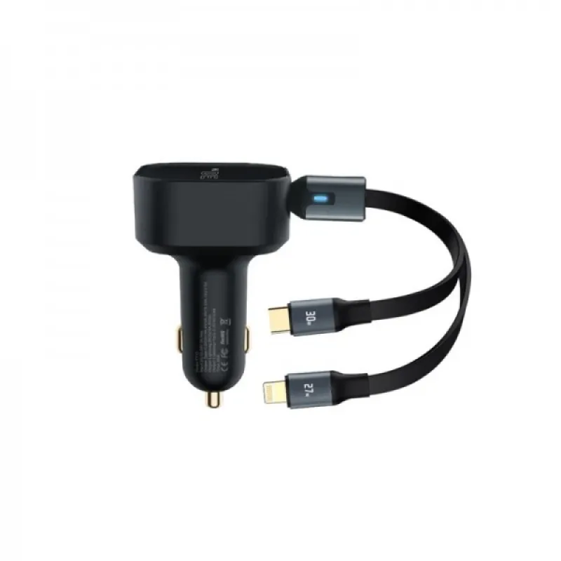 این شارژر فندکی با قدرت 30 وات از برند پرووان با کیفیت بالا و عملکرد عالی است. این محصول دارای دو کابل همراه است، یک کابل لایتنینگ و یک کابل Type-C که از دو نوع پورت مختلف برای شارژ استفاده میکند.