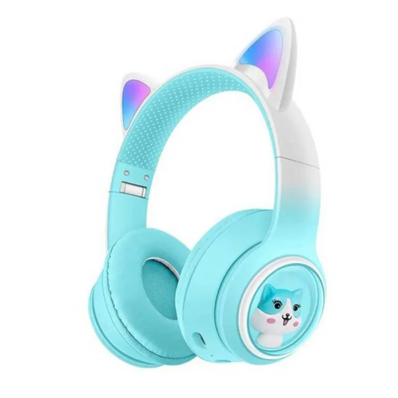 هدفون بلوتوث بی سیم با صدای عالی و طراحی زیبا با گوش های گربه ای که با نور ال ای دی رنگارنگ روشن می شوند. آنها برای نگهداری آسان تاشو هستند و دارای یک هدبند قابل تنظیم برای پوشیدن راحت هستند